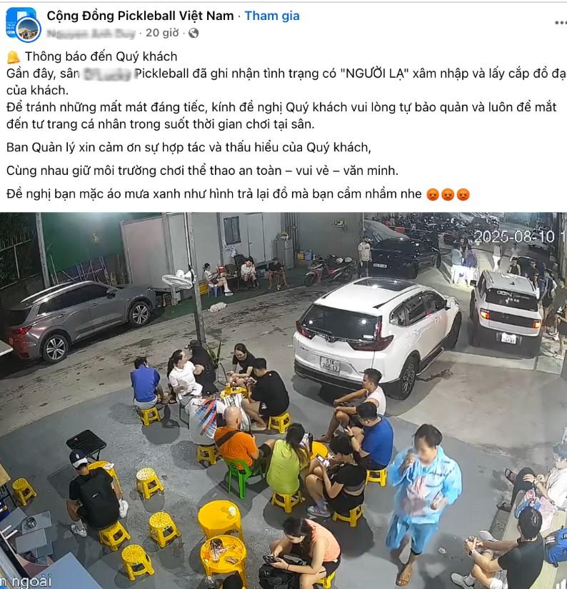 Nhiều người chơi pickleball mất điện thoại, ví, vợt ngay trong lúc thi đấu vì thiếu cảnh giác, khiến buổi chơi vui bỗng trở thành kỷ niệm buồn.