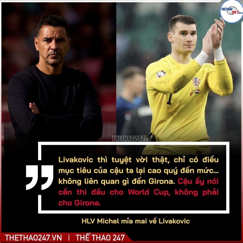 HLV Michel không giấu sự bức xúc về quyết định của Livakovic. Ông cho biết: "Livakovic là một người tuyệt vời, nhưng anh ấy có kế hoạch và mục tiêu khác với Girona. Anh ấy cần thi đấu cho World Cup, không phải cho Girona". Michel cũng thừa nhận rằng Livakovic đã từ chối thi đấu trong trận gặp Ourense ở Copa del Rey hồi đầu tháng này, khiến Gazzaniga phải ra sân thi đấu dù cơ thể đang yếu ớt.