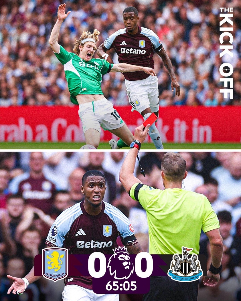 Aston Villa chỉ còn 10 người sau khi Ezri Konsa nhận thẻ đỏ, nhưng Newcastle vẫn không thể ghi bàn, chấp nhận chia điểm ở vòng mở màn Ngoại hạng Anh 2025/26.