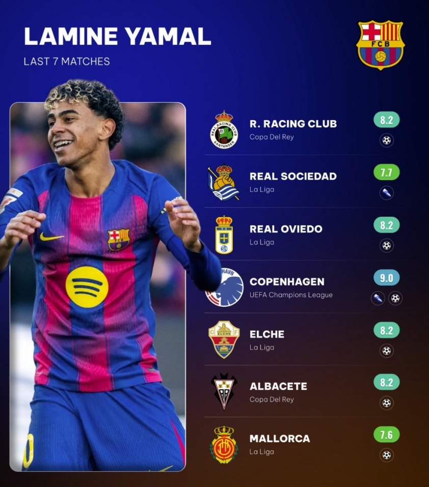 Những thông số này cho thấy Yamal không còn là một tài năng trẻ triển vọng mà đã thực sự trở thành linh hồn trong lối chơi của gã khổng lồ xứ Catalan. Với khả năng quyết định trận đấu bằng những khoảnh khắc cá nhân xuất sắc, Lamine Yamal đang vững vàng trên con đường trở thành biểu tượng mới của bóng đá thế giới.