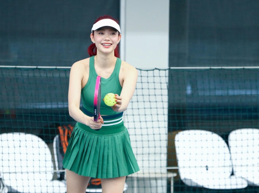 Không chỉ thể hiện đam mê qua từng cú đánh bóng, Minh Hằng còn ghi điểm với phong cách thời trang thể thao chỉn chu, trẻ trung. Cô thường diện váy tennis dáng ngắn, áo sát nách khoe vai thon, kết hợp sneaker và mũ lưỡi trai. Gương mặt rạng rỡ, thần thái tự tin giúp cô nổi bật như một “nữ thần sân đấu”.