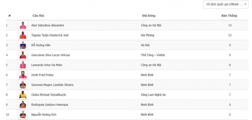 Tuy nhiên, lợi thế hiện tại vẫn đang thuộc về Hoàng Hên. Khả năng duy trì hiệu suất cao cùng tầm ảnh hưởng rõ rệt giúp anh trở thành ứng viên sáng giá nhất cho danh hiệu chân sút nội xuất sắc nhất mùa.