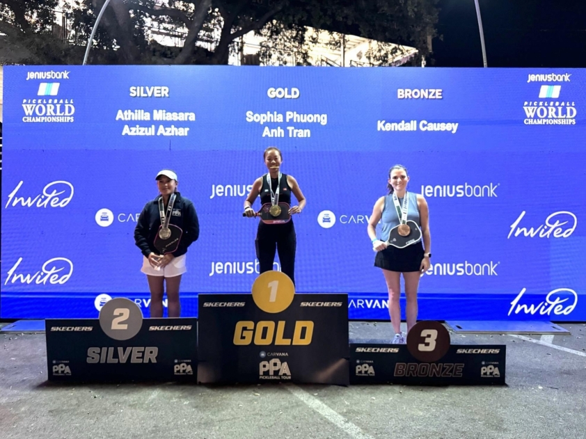 Tay vợt trẻ Sophia Phương Anh (17 tuổi) làm rạng danh thể thao Việt Nam khi giành chức vô địch đơn nữ 4.5 tại Jenius Bank Pickleball World Championships 2025, giải đấu danh giá nhất thế giới.
