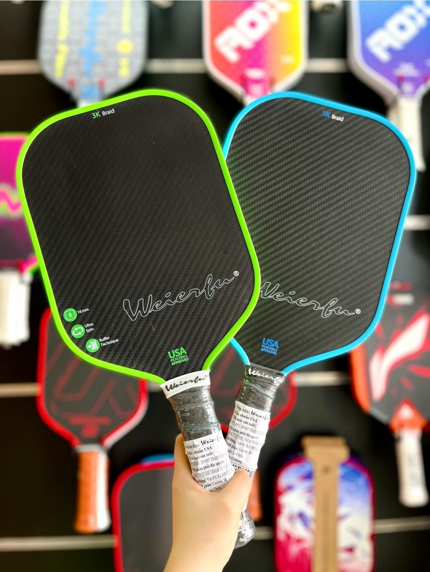 Vợt Weierfu 3K Braid 16mm sở hữu mặt carbon 3K và lõi tổ ong dày 16 mm, mang lại cảm giác đánh đầm tay, kiểm soát tốt và phù hợp cho người chơi pickleball ở nhiều trình độ.