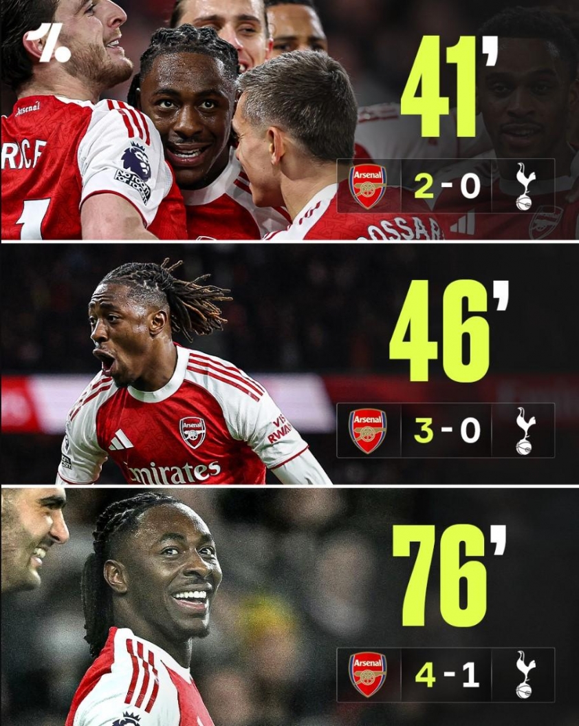 Eberechi Eze tiếp tục chói sáng với cú hat-trick trong chiến thắng 4-1 của Arsenal và trở thành cầu thủ đầu tiên lập hat-trick ở derby Bắc London kể từ Alan Sunderland năm 1978, nhưng bàn thắng đầu tiên của anh lại tạo ra một cơn bão phẫn nộ từ người hâm mộ vì tình huống việt vị gây tranh cãi.