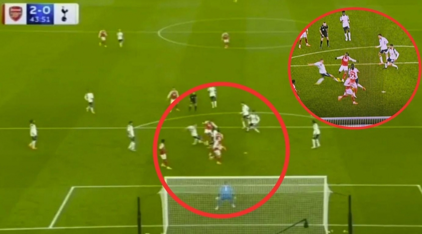 Eze xâm nhập khu vực rìa vòng cấm, tung cú sút mạnh khiến Guglielmo Vicario dù chạm tay vào bóng cũng không thể đẩy ra. Vấn đề nảy sinh ở chỗ có hai cầu thủ Arsenal - Martin Zubimendi và Leandro Trossard đứng ở vị trí việt vị ngay trước mặt Vicario.