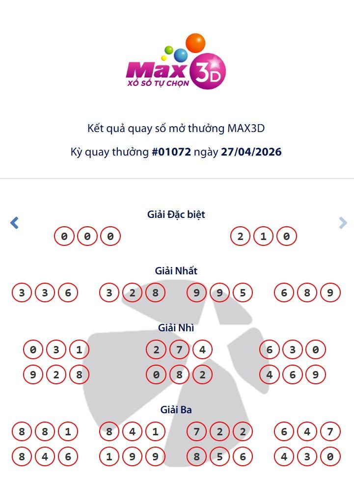 - Kết quả Vietlott Max 3D
