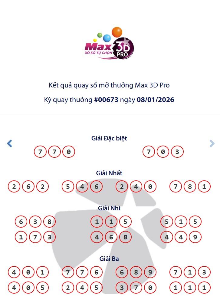 - Kết quả xổ số Vietlott Max 3D Pro