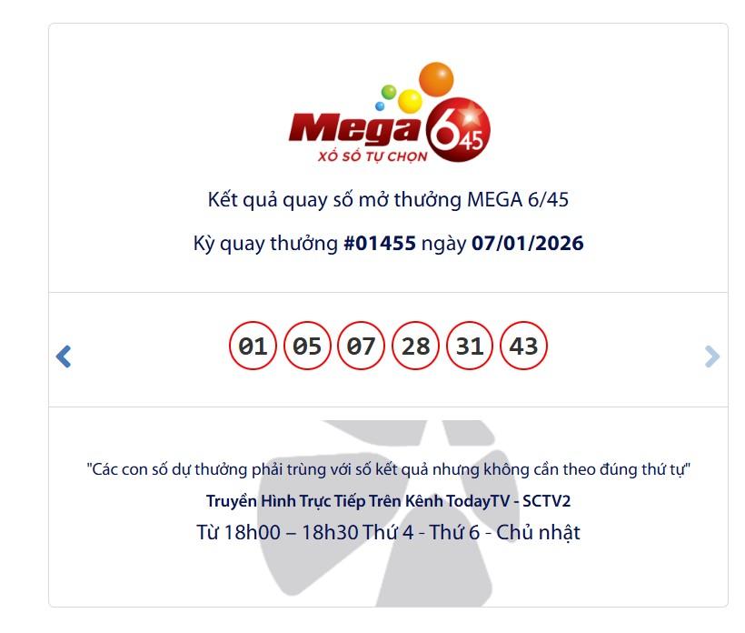 - Kết quả xổ số Vietlott Mega 6/45