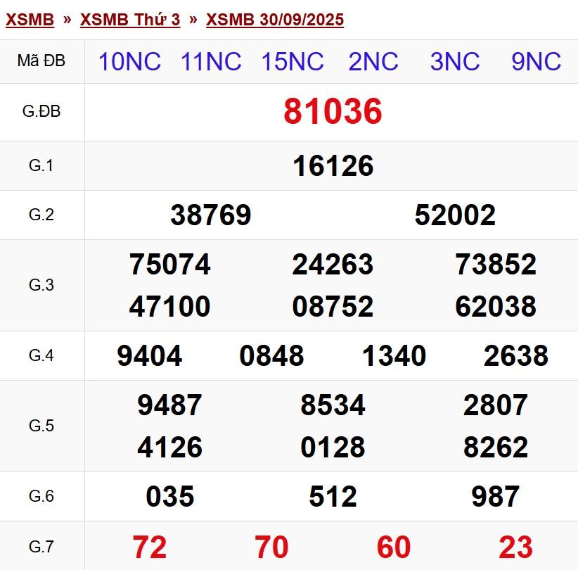 XSMB 30/9/2025 - Kết quả xổ số miền Bắc hôm nay 30/9/2025