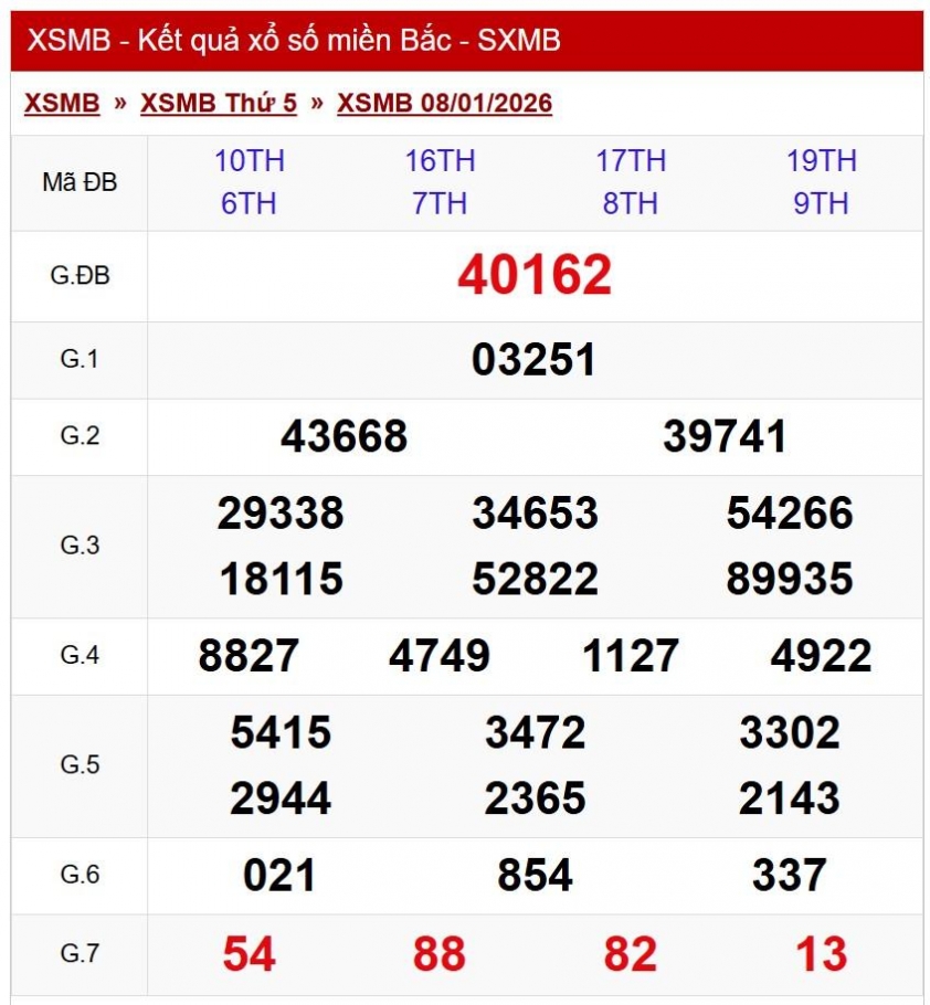 Kết quả xổ số miền Bắc (XSMB) hôm nay ngày 8/1