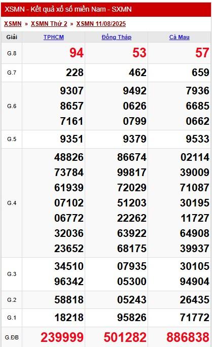 XSMN 11/8/2025 - Kết quả xổ số miền Nam hôm nay 11/8/2025