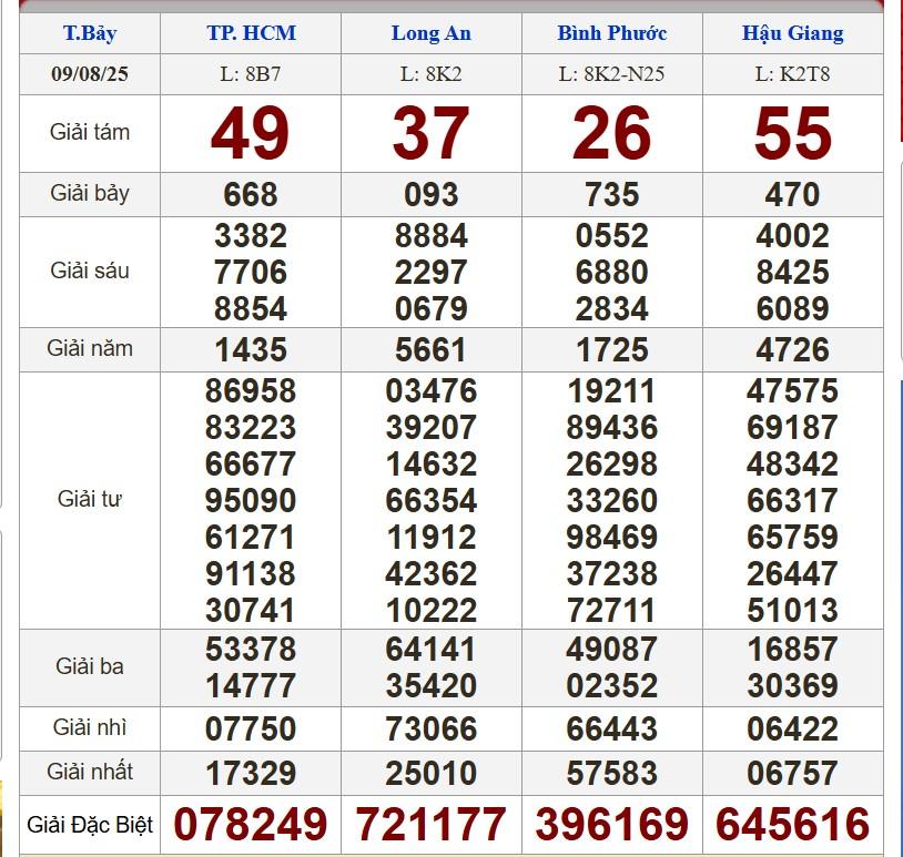 Kết quả xổ số miền Nam (XSMN) ngày 9/8