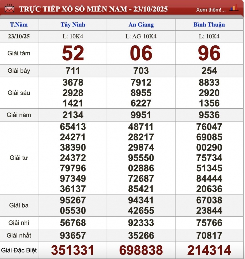 Kết quả xổ số miền Nam (XSMN) hôm nay ngày 23/10