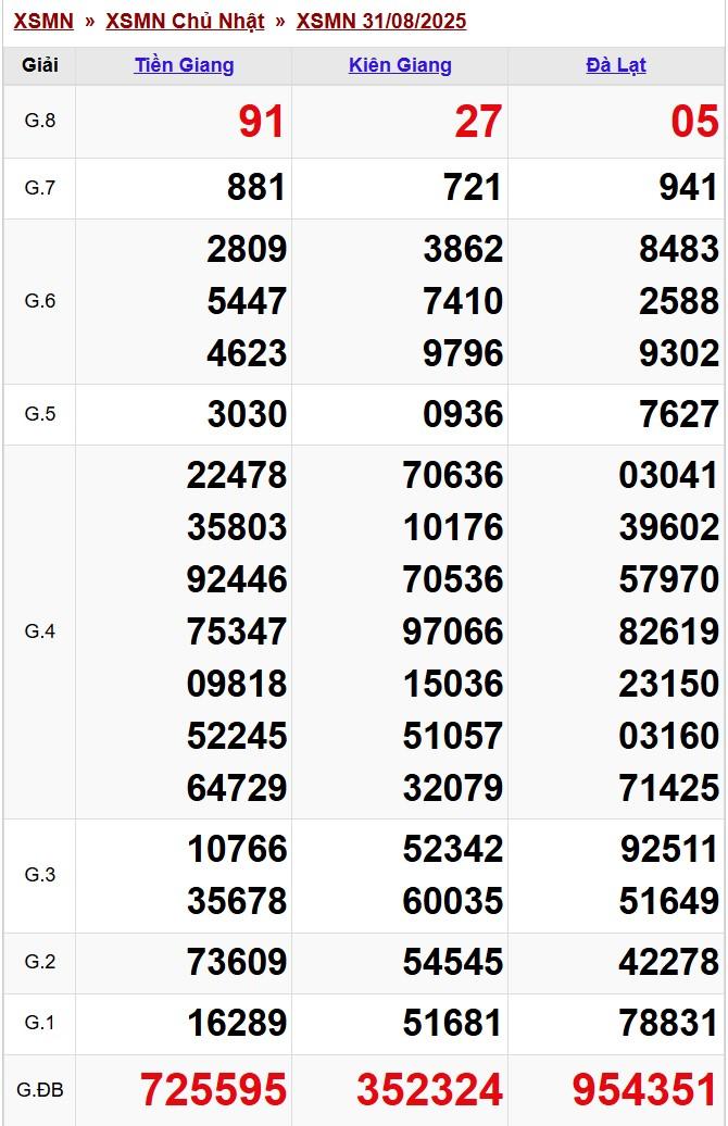 XSMN 31/8/2025 - Kết quả xổ số miền Nam hôm nay 31/8/2025