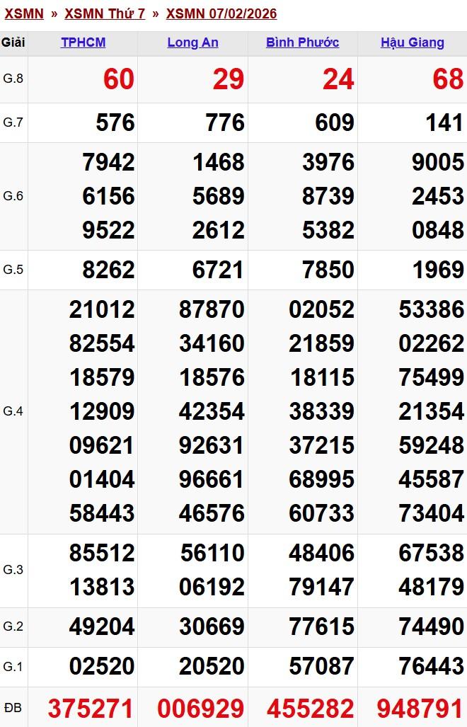 Kết quả xổ số miền Nam (XSMN) ngày 7/2