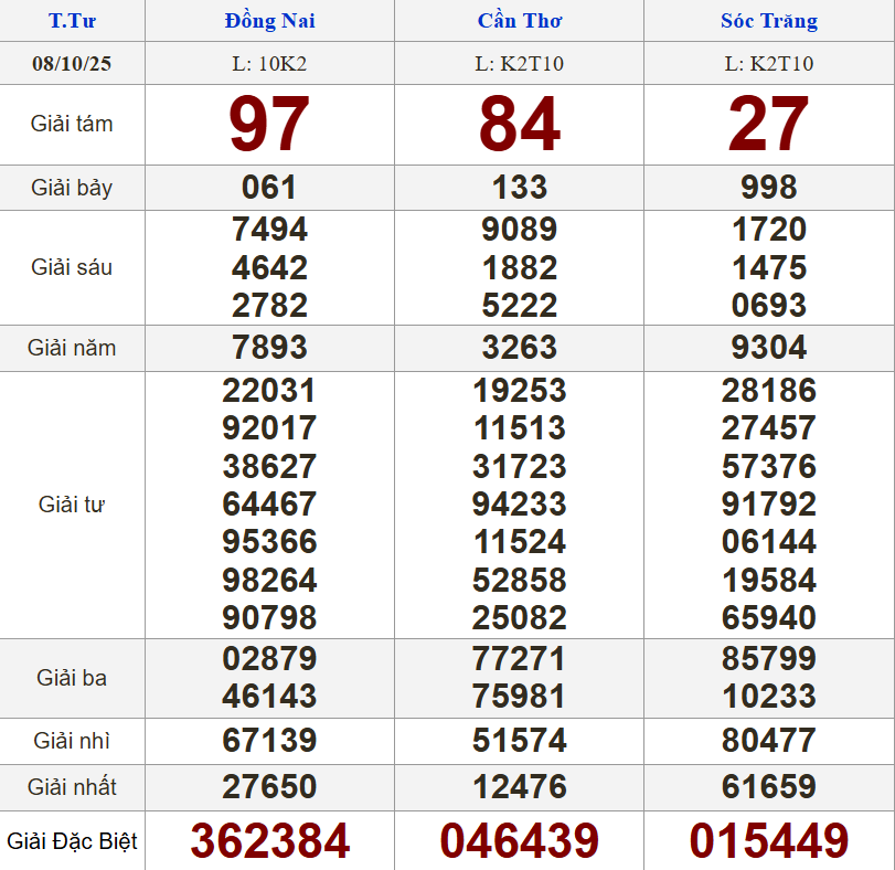 Kết quả xổ số miền Nam (XSMN) hôm nay ngày 8/10