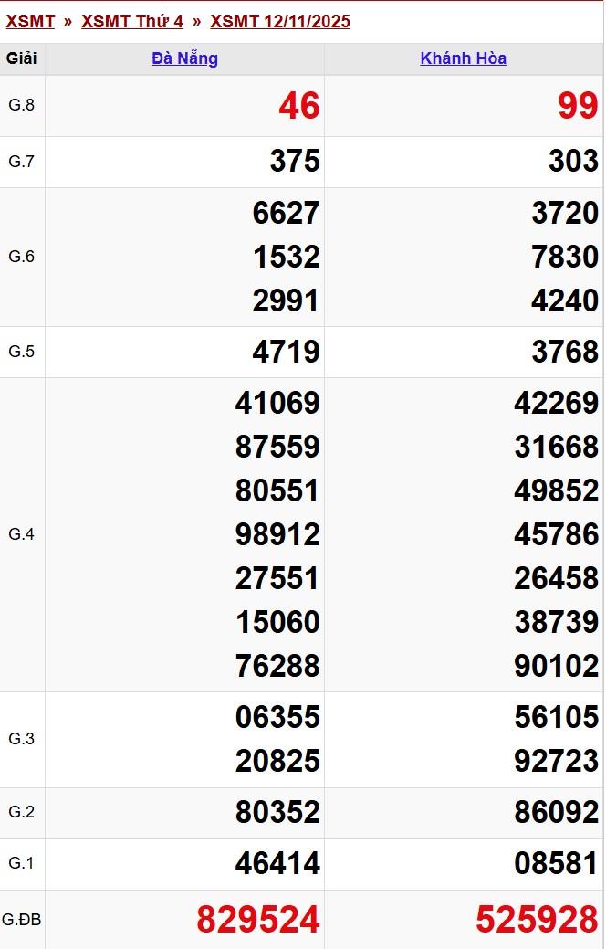 XSMT 12/11/2025 - Kết quả xổ số miền Trung hôm nay 12/11/2025