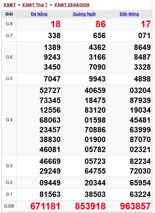 Kết quả xổ số miền Trung (XSMT) hôm nay ngày 25/4