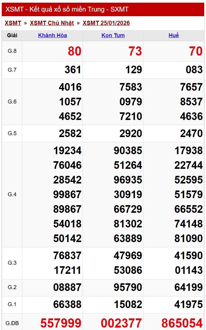 Kết quả xổ số miền Trung (XSMT) ngày 25/1