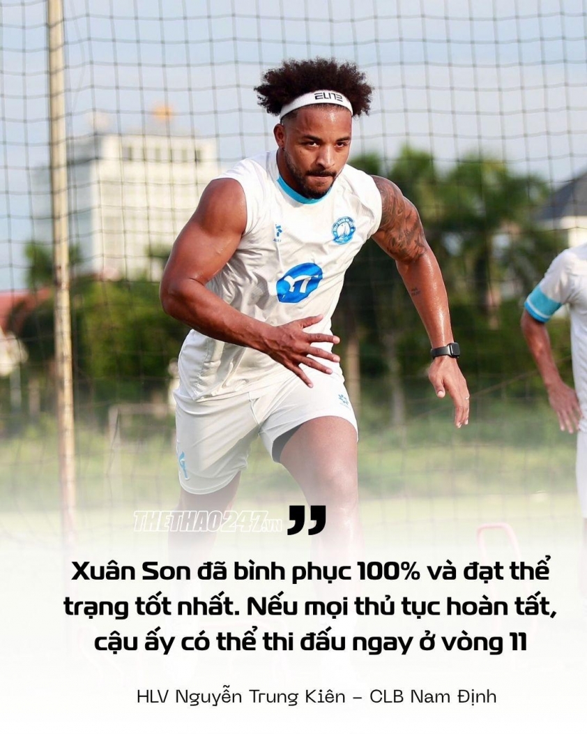 Sau thời gian dài điều trị chấn thương, tiền đạo nhập tịch Nguyễn Xuân Son đã sẵn sàng trở lại sân cỏ. HLV Nguyễn Trung Kiên của CLB Nam Định xác nhận ngôi sao gốc Brazil đã hồi phục hoàn toàn và có thể ra sân ngay từ vòng 11 V-League, thời điểm các đội bóng được phép đăng ký bổ sung cầu thủ.