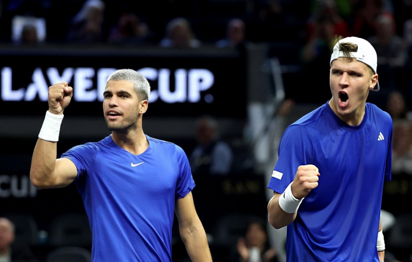 Phong độ quá tốt của Carlos Alcaraz ở trận đánh đôi giúp đội tuyển Châu Âu khép lại ngày mở màn Laver Cup 2025 với lợi thế dẫn 3-1.