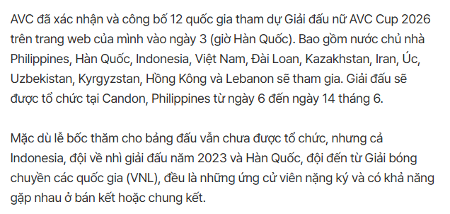 Trong một bài đăng trên trang chủ của tờ báo này - hiển thị đồng thời trên trang Naver, cây viết Ahn Young-joon lại đánh giá Hàn Quốc và... Indonesia là hai đội có cơ hội lớn đăng quang AVC Cup 2026.