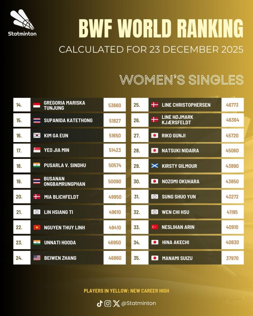 Thùy Linh cũng gây ra khó khăn nhất định cho những "hàng hiệu" như đương kim số 1 thế giới An Se-young, "Mèo máy" Akane Yamaguchi, Yeo Jia Min, v.v. Tháng 9 năm nay, Linh đạt thứ hạng tốt nhất sự nghiệp với vị trí 17 thế giới.