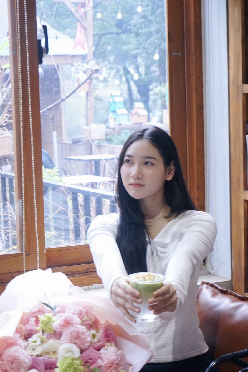 Trong khi đó, dù chưa có sự nghiệp và danh tiếng đạt đỉnh như Kiều Trinh, song Lại Thị Khánh Huyền - tài năng trẻ của Thông tin - Đông Bắc không hề kém cạnh đàn chị về nhan sắc. Bài đăng với dòng cap rất nghệ: "Tưởng em là hoa đã có chủ, ai ngờ em là chủ một vườn hoa" của Khánh Huyền trên trang Facebook cá nhân cũng nhận được lượng tương tác ấn tượng.