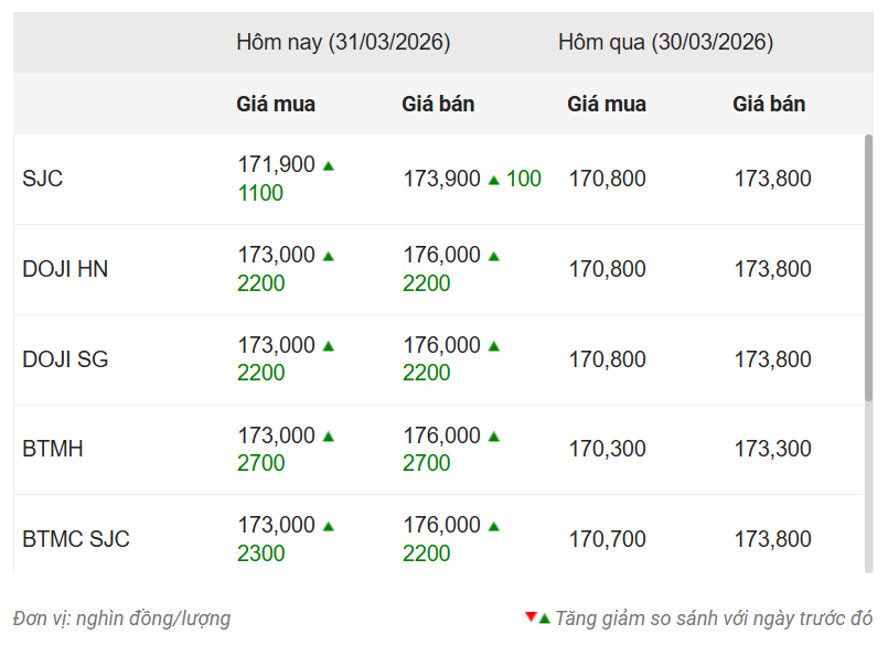 Giá vàng hôm nay 31/3 tại thị trường trong nước