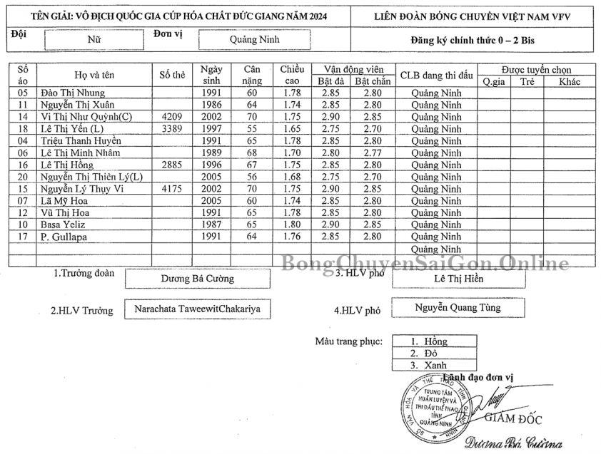 Danh sách cầu thủ Quảng Ninh giai đoạn 2 giải bóng chuyền nữ VĐQG 2024