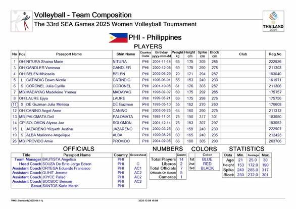 Danh sách bóng chuyền nữ Philippines SEA Games 33