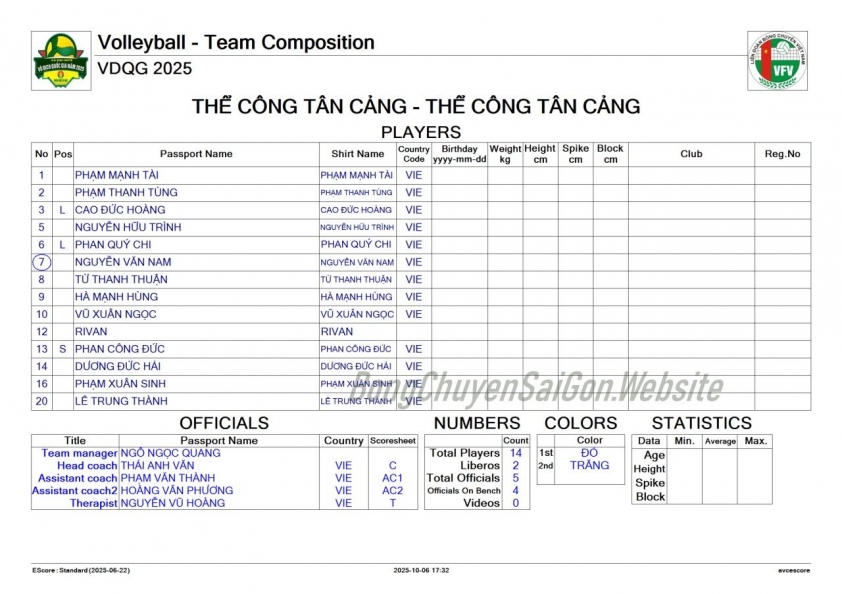Danh sách cầu thủ Công an TPHCM giải bóng chuyền VĐQG 2025