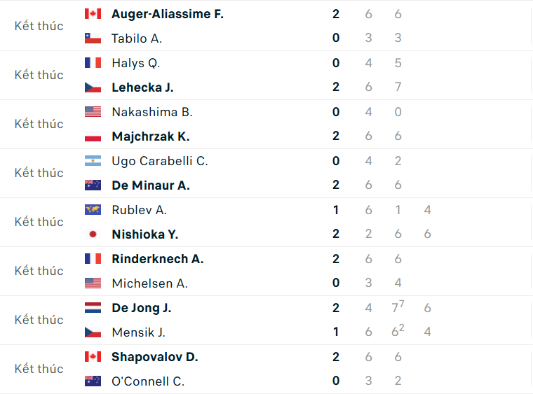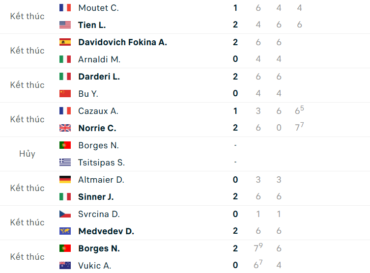 Kết quả ATP Thượng Hải - Vòng 1/32