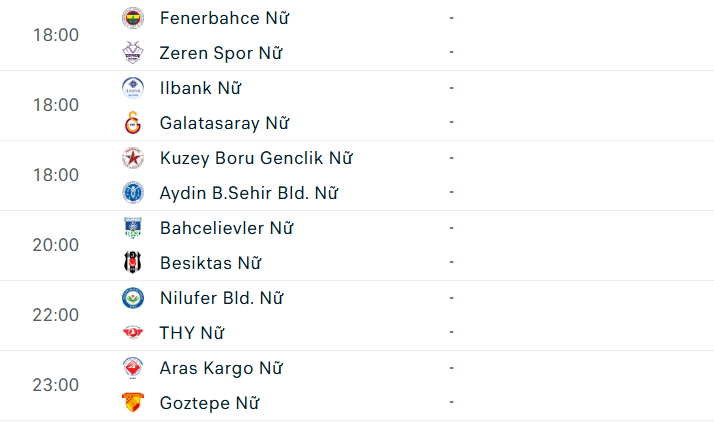 Lịch thi đấu giải VĐQG nữ Thổ Nhĩ Kỳ