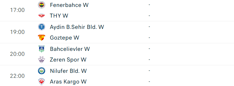 Lịch thi đấu giải VĐQG nữ Thổ Nhĩ Kỳ