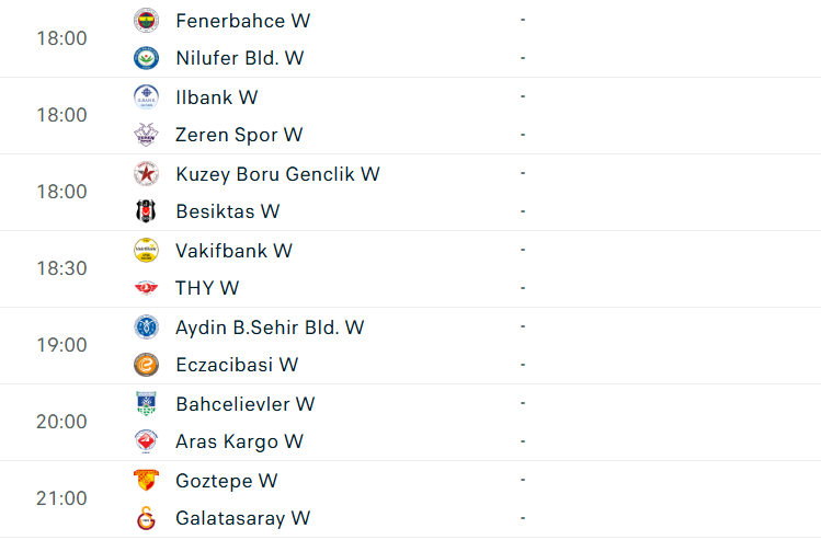 Lịch thi đấu giải VĐQG nữ Thổ Nhĩ Kỳ