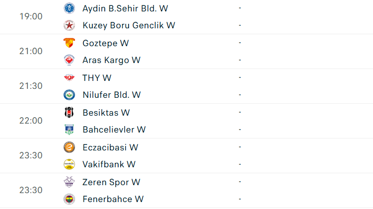 Lịch thi đấu giải VĐQG nữ Thổ Nhĩ Kỳ