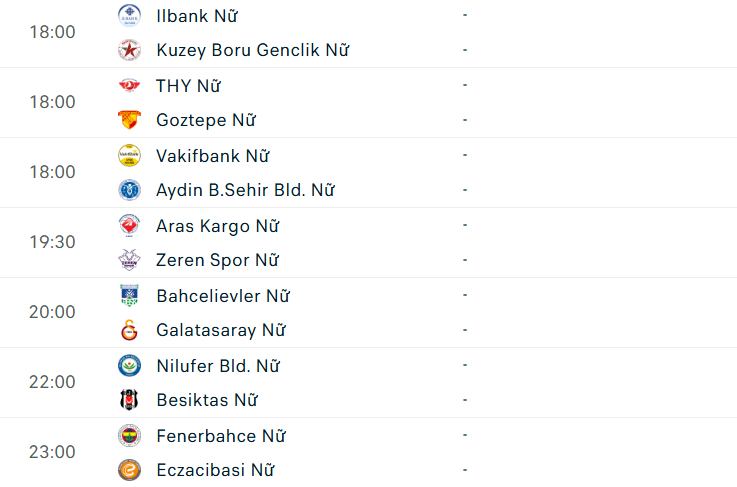 Lịch thi đấu giải VĐQG nữ Thổ Nhĩ Kỳ