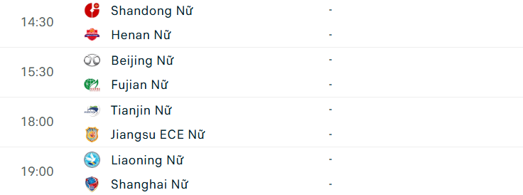 Lịch thi đấu giải VĐQG nữ Trung Quốc