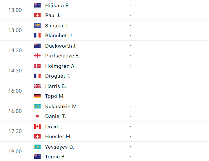 Lịch thi đấu ATP Stockholm - Vòng loại