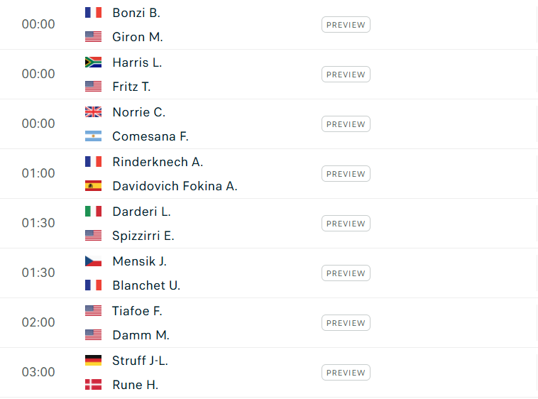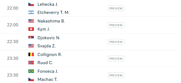 Lịch thi đấu US Open - Vòng 1/32 đơn nam