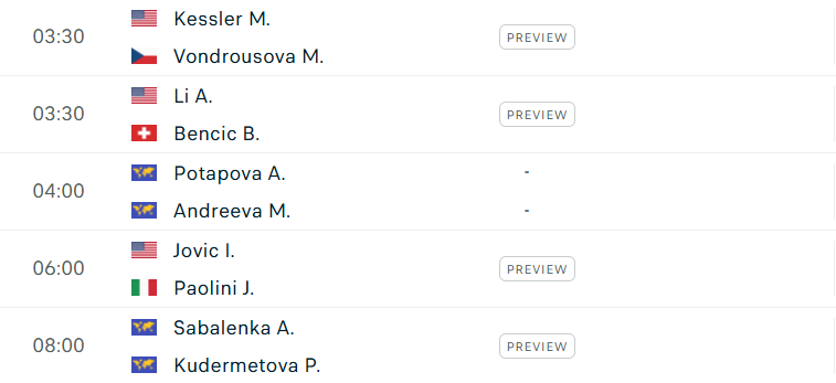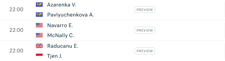 Lịch thi đấu US Open - Vòng 1/32 đơn nữ