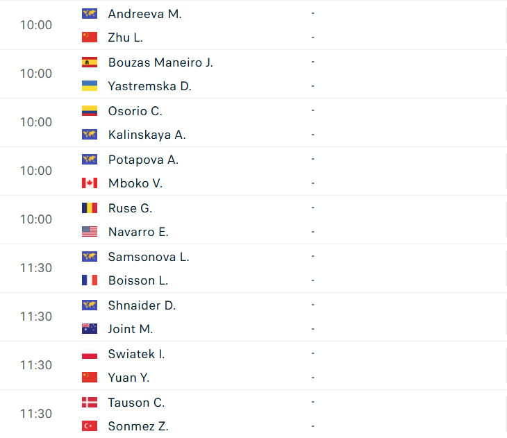 Lịch thi đấu WTA Bắc Kinh - Vòng 1/32