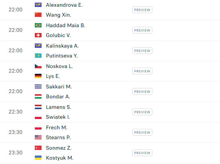 Ở nội dung đơn nữ, hạt giống số 2 Iga Swiatek chỉ phải gặp tay vợt không mấy tên tuổi Suzan Lamens, trong khi nhà vô địch US Open 2023 - Coco Gauff sẽ chạm trán á quân Olympic Paris 2024 - Donna Vekic.