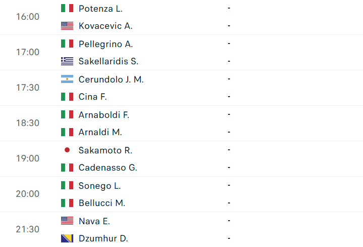 Lịch thi đấu ATP Challenger Cagliari - Vòng 1/16