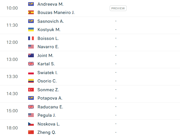 Cùng thời điểm, giải ATP 1000 áp chót trong năm - Shanghai Masters 2025 sẽ bắt đầu với các trận đấu ở vòng loại, có sự góp mặt của một số tay vợt khá đáng chú ý như Bernard Tomic, Nikoloz Basilashvili, Alejandro Tabilo hay tài năng trẻ Nishesh Basavareddy, v.v.