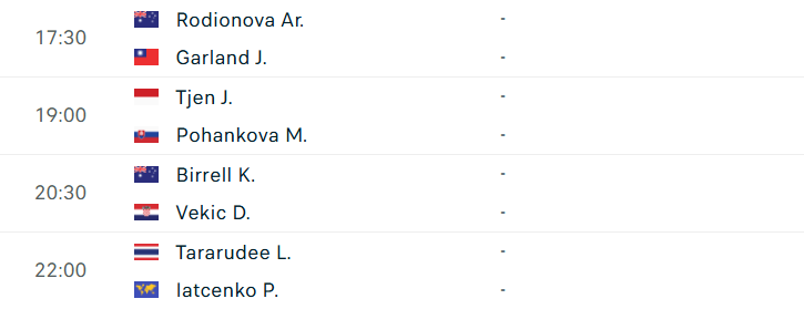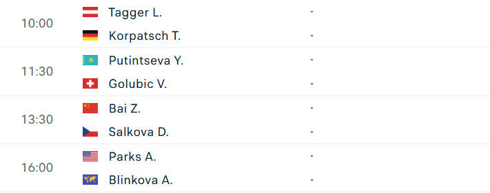 Lịch thi đấu WTA Hồng Kông - Tứ kết