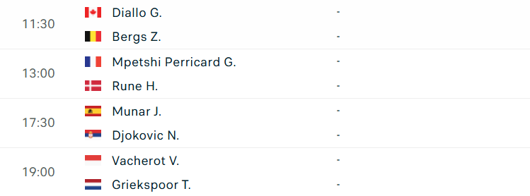 Lịch thi đấu ATP Thượng Hải - Vòng 1/8