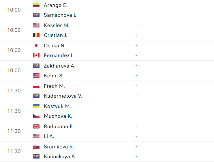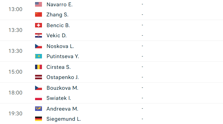 Lịch thi đấu WTA Vũ Hán - Vòng 1/32
